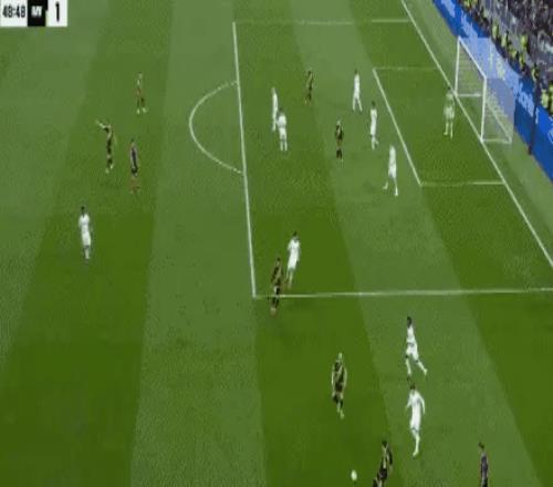 第49分鐘,巴列卡諾的德弗魯托斯門前搶點破門。皇馬1-1!